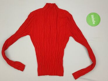 Czerwony golf Stradivarius, rozmiar M - Fason: dopasowany, prążkowana dzianina - Kołnierz: wysoki golf z delikatną falbanką przy krawędzi - Rękawy: długie, zakończone subtelną falbanką - Materiał:...