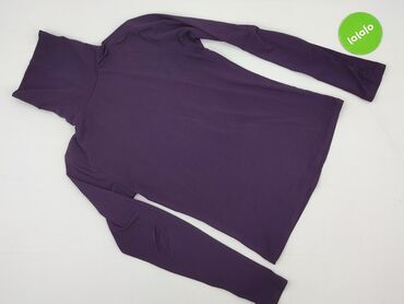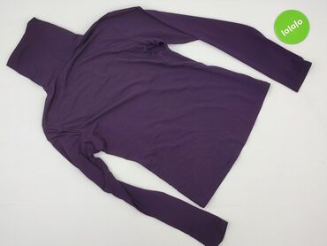 Fioletowy golf damski z długim rękawem - Krój: dopasowany, delikatne marszczenia przy dekolcie - Kołnierz: wysoki golf, miękko układający się - Rękawy: długie - Materiał: lekka, elastyczna dzianin...Stan: