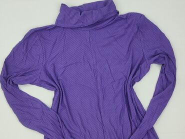 Fioletowy golf damski z długim rękawem - Krój: dopasowany, delikatne marszczenia przy dekolcie - Kołnierz: wysoki golf, miękko układający się - Rękawy: długie - Materiał: lekka, elastyczna dzianin...