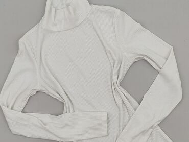 Biała prążkowana bluzka z długim rękawem i golfem/półgolfem. - Krój dopasowany, elastyczny materiał z drobnym pionowym prążkiem. - Długość standardowa, proste wykończenie dołu i rękawów. - Miękka, ...