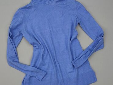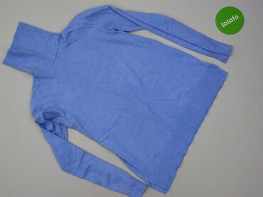 Sweter damski z golfem, kolor jasnoniebieski. - Krój: luźny, z obniżoną linią ramion - Dekolt: wysoki półgolf/golf z szerokim, prążkowanym ściągaczem - Rękawy: długie, zakończone szerokimi ściągac...