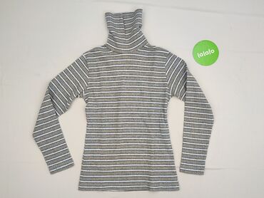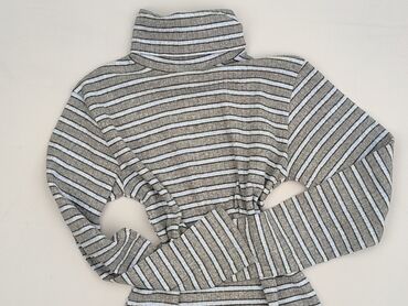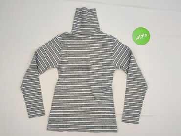 Szary golf prążkowany – damski - Marka: Primark (etykieta „Primark Cares”) - Rozmiar z metki: S - Fason: dopasowany, elastyczny - Dekolt: golf/stójka - Rękaw: długi - Wzór/struktura: gęsty pionowy...