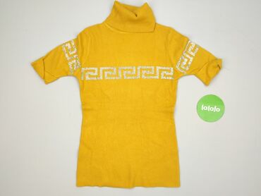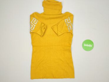 Golf prążkowany w kolorze musztardowo‑żółtym - Fason: dopasowany, elastyczny, długie rękawy - Kołnierz: wysoki golf do podwinięcia - Dzianina: średniej grubości, sprężysta, w pionowe prążki (rib) ...Dzianinowy golf damski D.D. STYLE, rozmiar S/M