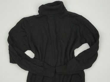 Czarny sweter damski z golfem - Krój: dopasowana góra z prążkowaną dzianiną, lekko rozszerzany dół - Rękawy: długie, zakończone ściągaczami - Dekolt: wysoki golf, miękki i elastyczny - Dzianina: p...