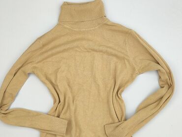 Sweter damski z golfem, beżowy, dzianina - Fason: dopasowany sweter z wysokim, szerokim golfem - Długość: do bioder - Rękawy: długie - Dzianina: grubszy, miękki splot o wyraźnej fakturze - Kolor: ...