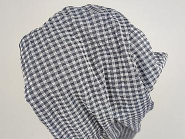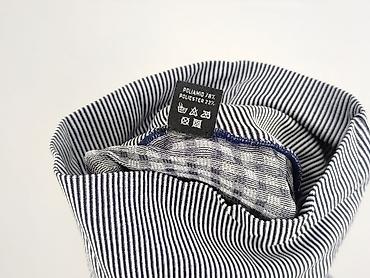- Wzór: drobna kratka w odcieniach granatu i bieli; mankiety, dół i wysoka stójka w delikatne biało‑granatowe paski