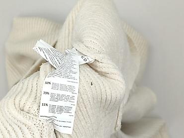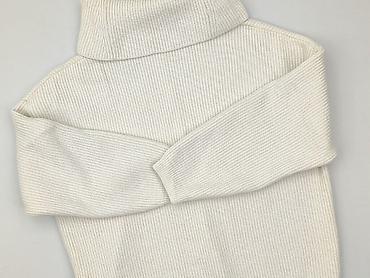 - Fason: sweter z wysokim golfem, prążkowany splot, długie rękawy, ściągacz na mankietach i u dołu