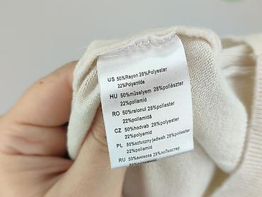 - Materiał (z metki): 50% wiskoza (rayon), 28% poliester, 22% poliamid – dzianina miękka, elastyczna i przyjemna w dotyku