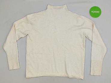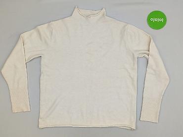 Golf damski, biały/kremowy, z długim rękawem. - Fason: klasyczny golf z szeroką, prążkowaną stójką - Materiał: cienka, dzianinowa przędza o gładkim splocie; prążkowane wykończenia ściągaczy przy s...