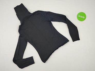 Czarny sweter damski marki De Cali z golfem, rozmiar M. Wykonany z mieszanki 50% akrylu i 50% wełny, co zapewnia komfort noszenia i trwałość. Sweter ma długie rękawy i prążkowane mankiety oraz doln...
