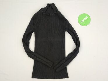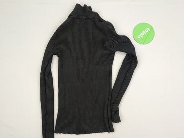 Czarny golf prążkowany, dopasowany, z długim rękawem. - Fason: obcisły, elastyczny, podkreślający sylwetkę - Kołnierz: wysoki golf, można wywijać - Rękawy: długie, dopasowane - Dzianina: grubsza, ...