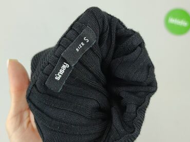 Czarny golf prążkowany – rozmiar S - Fason: dopasowany sweter z wysokim, miękkim golfem - Dzianina: grubsza, elastyczna, wyraźny pionowy prążek na całej powierzchni - Rękawy: długie - Dół i mankie...