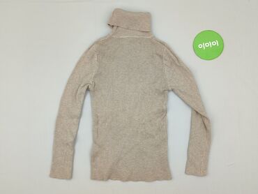 Sweter damski z golfem, beżowy melanż. - Fason: luźny, swobodny, z długim rękawem. - Kołnierz: wysoki, obszerny golf z elastycznym ściągaczem (prążkowany). - Wykończenia: ściągacze przy rękawach i...