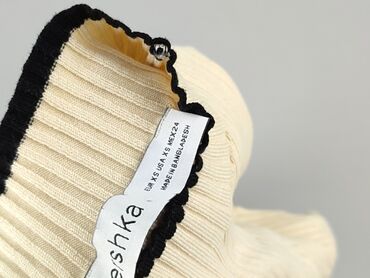 Bershka – prążkowany golf w paski - Model: dopasowany sweter z golfem - Marka: Bershka (etykieta widoczna na zdjęciu) - Rozmiar: S (EUR S / USA S / MEX 26) - Kolorystyka: musztardowy z białymi i c...