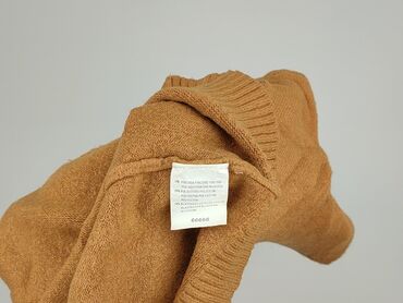 Golf/Sweter prążkowany z falbanami na rękawach - Krój: dopasowany, elastyczny prążek - Kolor: beż/kamel - Dekolt: głęboki V z małą czarną kokardką z przodu - Kołnierz: wysoki, składany golf - Ręka...Stan: