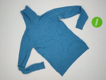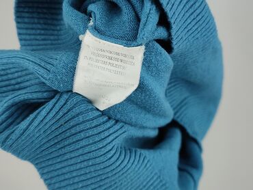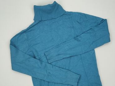 Sweter damski z golfem, błękitny - Fason: dłuższy, lekko dopasowany, dzianinowy - Kołnierz: obszerny golf z miękkiej, pętelkowej dzianiny (efekt frote) - Rękawy: długie, zakończone szerokimi manki...