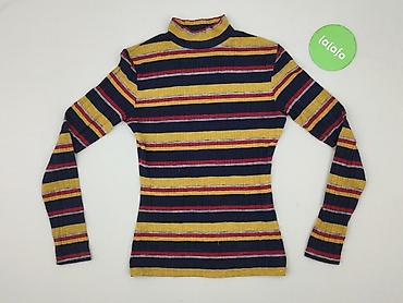 Damska bluzka/sweterek w paski z golfem - Fason: dopasowany, elastyczny, długość do bioder - Dekolt: wysoki golf miękko układający się przy szyi - Rękawy: krótkie, lekko bufiaste u nasady - Wzór: ...