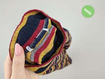 - Wzór: poziome pasy w kolorach granatowym, musztardowym, czerwonym i szarym