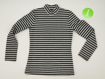 Czarnobiały sweter w paski z golfem – damski - Fason: dopasowany, z długim rękawem - Kołnierz: wysoki golf, elastyczny - Wzór: poziome paski czarno-białe - Dzianina: miękka, sprężysta, drobny splo...