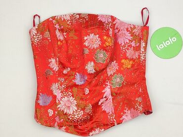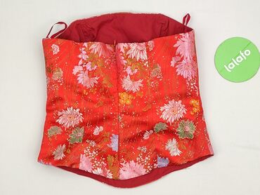 Krótki top gorsetowy bez ramiączek - Krój: bustier/biustonoszowy, usztywniane miseczki z cięciami modelującymi - Zapięcie: metalowy zamek błyskawiczny z tyłu (złoty) - Wzór: pomarańczowo‑brązowe f...Stan: