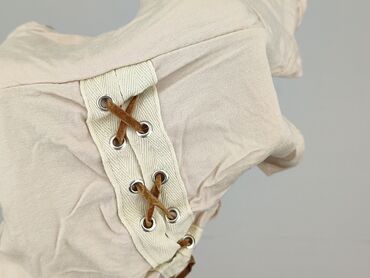 InnyTen damski gorsetowy top w kolorze beżowym charakteryzuje się unikalnym sznurowaniem z przodu, które dodaje mu oryginalności. Regulowane ramiączka zapewniają idealne dopasowanie i komfort noszenia. Jest to wszechstronny element garderoby, który sprawdzi się zarówno w codziennych stylizacjach, jak i na specjalne okazje, oferując dopasowany krój podkreślający sylwetkę.