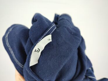 Ciemnoniebieska bluzka damska marki TU z krótkim rękawem. Bluzka charakteryzuje się luźnym fasonem i okrągłym dekoltem. Na przodzie widoczny jest wzór w poziome, przecierane pasy z tekstem. Wykonan...
