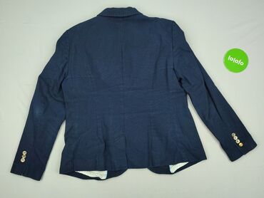 Damska marynarka H&M - Kolor: granatowy - Krój: taliowany, jednorzędowy - Zapięcie: jeden guzik z przodu; z tyłu dekoracyjny pasek z dwoma guzikami - Kołnierz: klasyczne, wąskie klapy - Kieszenie:...