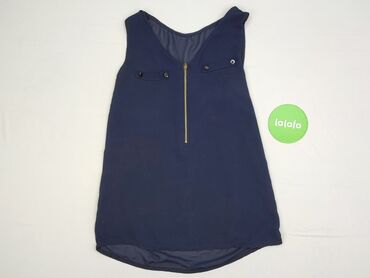 Top bez rękawów damski - Kolor: niebieski jeansowy/morski - Fason: prosty, lekko luźny, bez zapięcia - Dekolt: w kształcie litery V z krótką stójką - Materiał: 100% poliester (metka na zdjęciu) - ...