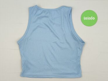 Niebieska damska koszulka na ramiączkach - Klasyczny, dopasowany fason bez rękawów - Okrągły, głęboki dekolt z przodu i z tyłu - Cienka, miękka dzianina – przewiewna i elastyczna - Dekoracyjne, po...