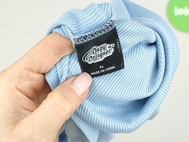 Niebieska damska koszulka na ramiączkach - Klasyczny, dopasowany fason bez rękawów - Okrągły, głęboki dekolt z przodu i z tyłu - Cienka, miękka dzianina – przewiewna i elastyczna - Dekoracyjne, po...Jasnoniebieski podkoszulek damski z okrągłym dekoltem i szerokimi ramiączkami. Na przodzie umieszczony jest ciemny nadruk w kształcie gwiazdy, dodający charakteru. Materiał jest prążkowany, co nadaje mu subtelną teksturę. Podkoszulek marki Oazy Designer, rozmiar XL, wyprodukowany w Chinach. Idealny do noszenia na co dzień, na siłownię lub jako element warstwowy w stylizacjach.