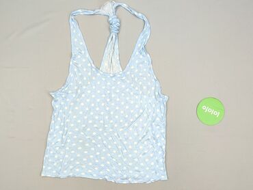 Top na ramiączkach damski - Kolor: jasny błękit - Fason: luźny, trapezowy; dół zakończony falbaną - Ramiączka: cienkie, z możliwością zawiązania/dopasowania - Wzór: połączenie gładkiego materiału ...Stan: