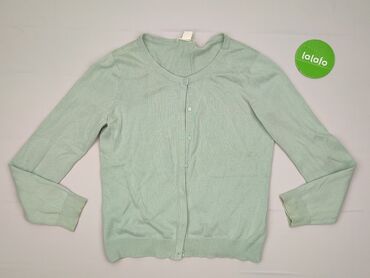Kardigan H&M Basic - Kolor: jasna zieleń (miętowy) - Fason: zapinany na guziki, dekolt V, długie rękawy - Materiał: 83% bawełna, 17% poliamid - Rozmiar z metki: M (EU/US/CA), CN 170/96A - Wykończe...Stan:
