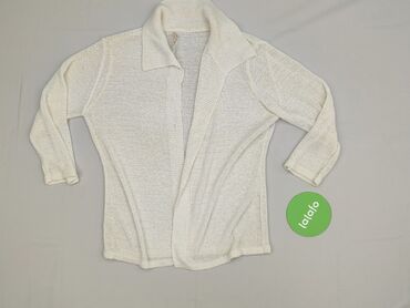 Ażurowy kardigan TSEGA - Marka: TSEGA - Rozmiar z metki: M/L - Kolor: ecru/kremowy - Fason: lekki, bez zapięcia, z długim rękawem - Detale: efektowne wstawki z koronki/siateczki na ramionach i prz...