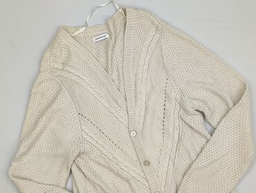 Beżowy kardigan damski, dzianinowy - Krój: dopasowany, prążkowany splot - Zapięcie: jeden duży guzik z przodu - Rękawy: długie - Dekolt: w kształcie litery V - Długość: do bioder/krótszy kardigan ...