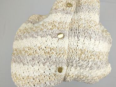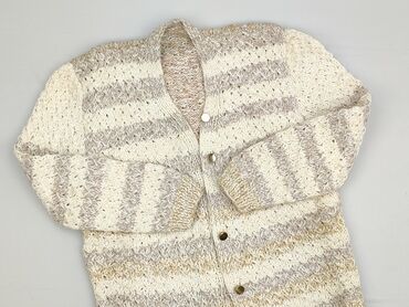 W serekKardigan damski, dziergany, w paski beżowo‑kremowe