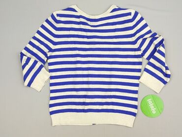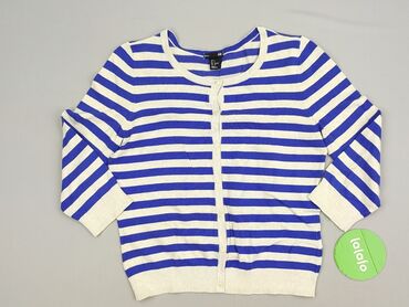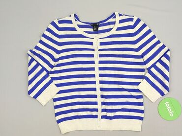 H&M – kardigan damski w paski - Model: cienki sweter zapinany na guziki - Kolor: granatowy z poziomymi białymi paskami - Krój: dekolt w serek (V-neck), długie rękawy, ściągacze przy mankietach i n...