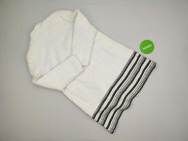 Biały, krótki kardigan damski H&M - Fason: cropped, zapinany na guziki z imitacją rogu - Dekolt/stójka: ściągacz przy szyi - Rękawy: długie, zakończone ściągaczem - Dół: ściągacz dla lepszego dopa...