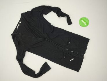 Czarny, prążkowany kardigan damski z długim rękawem - Fason: otwarty przód z wiązaniem na tasiemkę u dołu (można zawiązać lub nosić luźno) - Dzianina: elastyczna, pionowe grube prążki, miękka w dot...Stan: