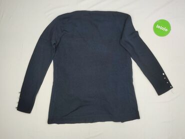 Damski kardigan Beloved Woman - Kolor: ciemnogranatowy - Fason: dopasowany, z głębokim dekoltem V - Zapięcie: na guziki z przodu (3 szt.) - Rękaw: długi - Materiał: elastyczna, prążkowana dzianina...