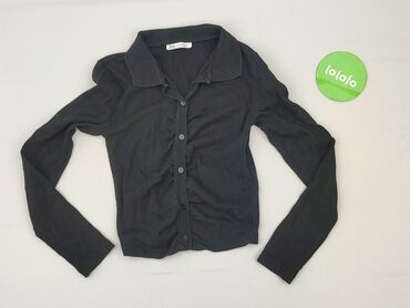 Damski kardigan ZARA - Model: krótki kardigan zapinany na 3 guziki - Kolor: czarny - Fason: V-neck, lekko crop, długie rękawy - Dzianina: prążkowana, elastyczna i miękka - Detale: szerokie mankiet...