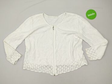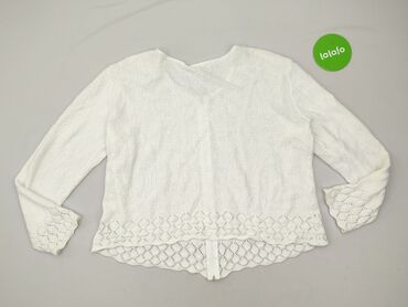 Ażurowa narzutka/kardigan damski, biały - Delikatna, półprzezroczysta siateczka z koronkowym motywem kwiatowym oraz geometrycznymi wstawkami - Długi rękaw, otwarty przód bez zapięcia – ładnie ukła...Stan: