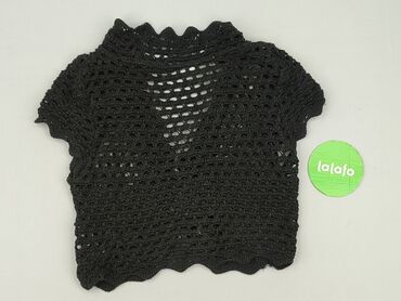 Czarny, półprzezroczysty krótki kardigan/bolerko z długim rękawem. - Tkanina: lekka siateczka z welurowym, błyszczącym wzorem liści/plashy (efekt 3D, połysk). - Krój: krótki, luźny, bez zapięcia...
