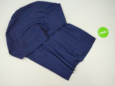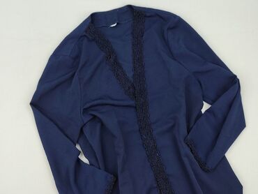 Damska narzutka/kamizelka z długim rękawem – granatowa z kontrastowym, białym wzorem - Krój: prosta narzutka bez zapięcia, wiązanie w talii sznurkiem (regulacja obwodu), lekko wydłużony tył z rozc...