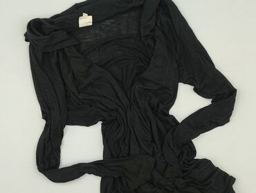 Długi kardigan damski, czarny - Fason: długi, otwarty (bez zapięcia) - Rękaw: długi, ściągacz przy mankiecie - Kieszenie: dwie naszywane z przodu - Struktura dzianiny: prążkowana w górnej części i...