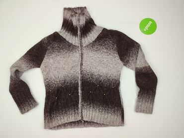 Miękki, ciepły sweter idealny na chłodniejsze dni; łączy wygodę golfa z praktycznością zamka i subtelnymi zdobieniami. Używany, stan bardzo dobry.