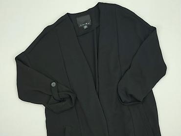 Damski żakiet/kardigan AMISU - Kolor: czarny - Fason: otwarty, bez zapięcia, kołnierz szalowy - Rękawy: 3/4 z możliwością podwinięcia - Kieszenie: dwie naszywane z przodu - Struktura materiału: dr...