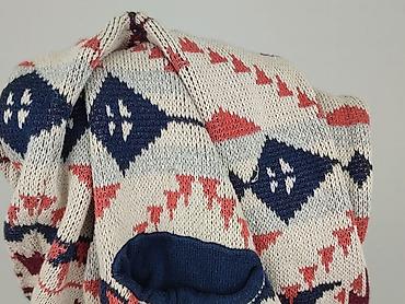 - Kolorystyka: ecru/krem z granatowym, bordowym i łososiowym wzorem geometrycznym