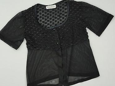 Ażurowa bluzka/kardigan marki DIZARO DE TOI - Kolor: czarny - Krój: krótki, lekko dopasowany - Rękaw: krótki - Dekolt: zaokrąglony w kształcie litery U - Zapięcie/wiązanie: cienka tasiemka z przod...