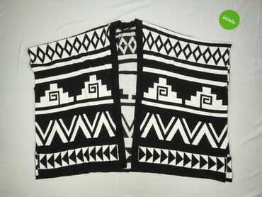 Czarny kardigan w białe, poziome pasy - Krój: rozpinany bez zapięcia (otwarty przód), rękawy 3/4 - Wzór: szerokie biało‑czarne pasy - Dekolt: zaokrąglony - Materiał: 100% akryl (etykieta na zdjęci...