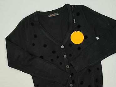 Kardigan damski, czarny - Krój: klasyczny, zapinany na 4 duże guziki z przodu - Dekolt: głęboki V z szeroką, prążkowaną plisą - Rękawy: długie - Wykończenie: szerokie, prążkowane mankiety i dół sw...
